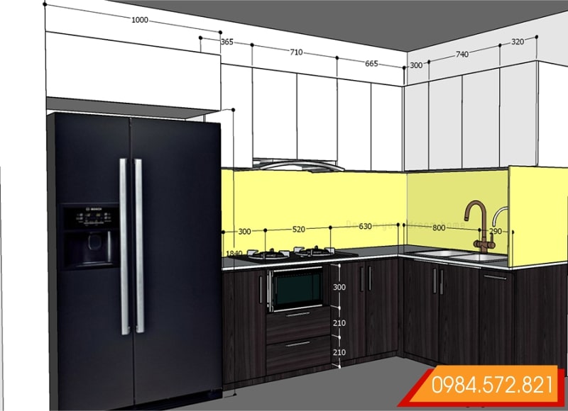 - Bước 3: Khảo sát công trình để có thông số thiết kế tủ bếp.